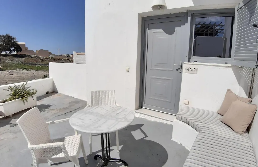 The 30 m² apartment lies 2.1 km from the Art Space Santorini. The property is located a 10-minute drive from the Archaeological Museum of Thera.